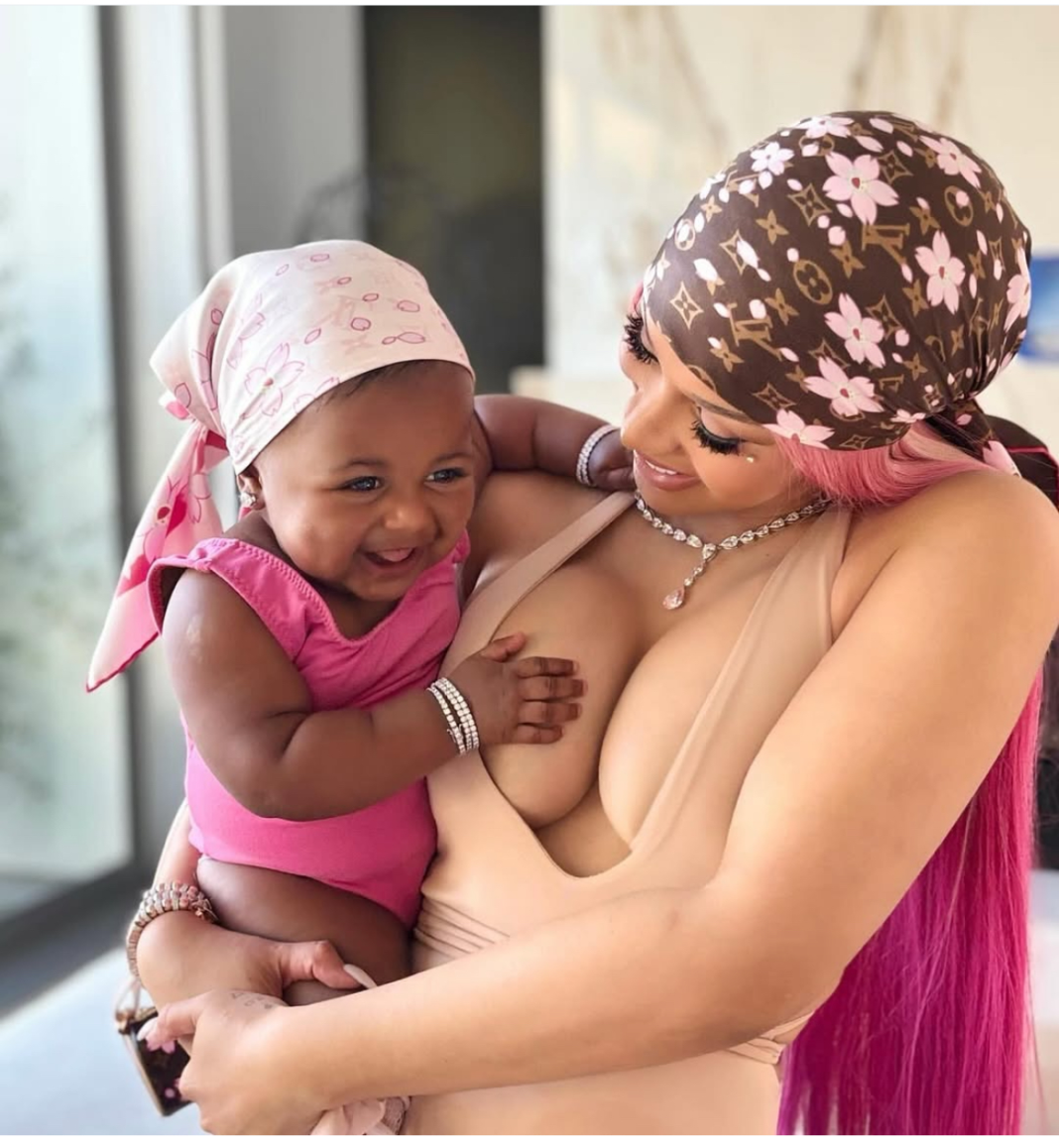 If ever there was a name that set the tone for a fresh start, it’s Blossom. True to her moniker, the newborn made her debut swathed in fuchsia pink, with a $415 Louis Vuitton silk scarf delicately draped over her head like a tiny, high-fashion crown. Diamond bracelets twinkled on her wrist—because why not start life with a little bling?